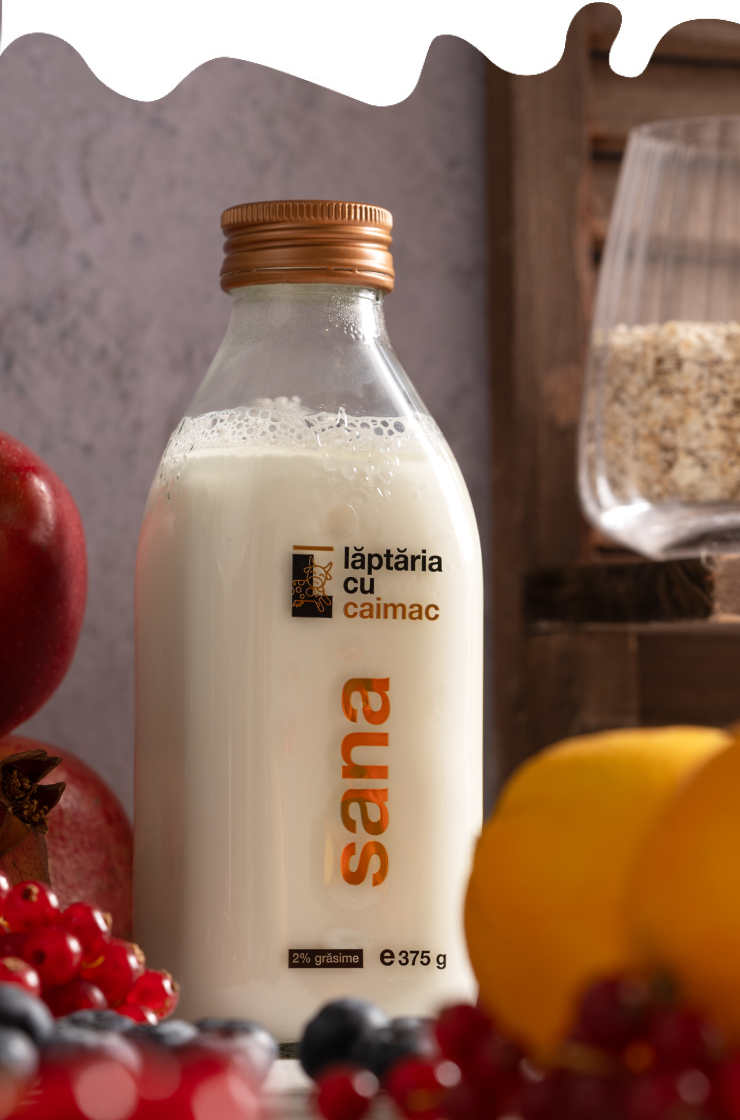 At Lăptăria cu Caimac, we believe, among other things, that the best milk is as the cow gives it, as long as we take good care and feed it properly and we make sure that the milk is safe and clean. Variations in milk fat are triggered by natural factors such as the cows’ diet and their level of hydration. However, we guarantee that the fat content will always vary between 3.8 and 4.1%. And that it gives cow’s milk a really good taste, like the one you remember when being a child.