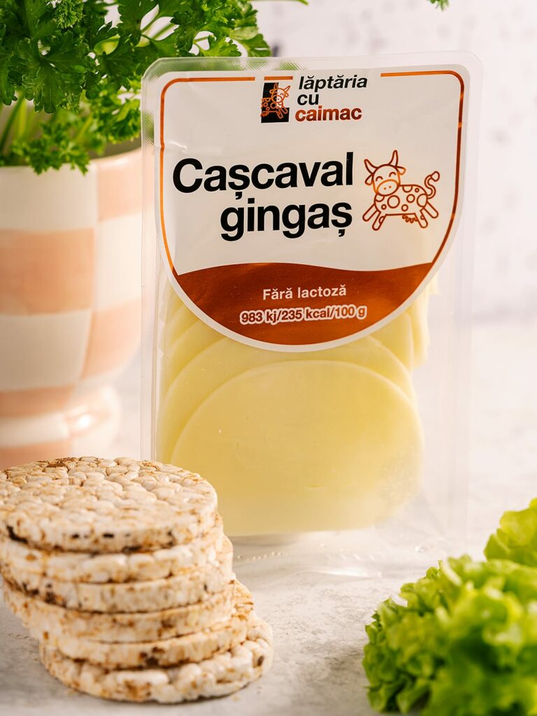 Obținut din lapte românesc fără lactoză și pasteurizat blând, Cașcavalul Gingaș are un conținut redus de grăsime (12,6%), dar păstrează gustul bogat, curat și echilibrat al unui cașcaval făcut ca la carte.